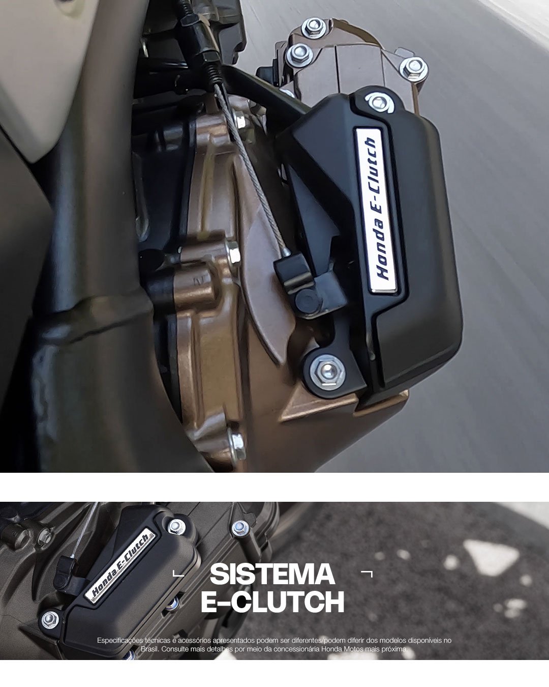 A inovadora tecnologia E-Clutch facilita as trocas de marcha, mantendo a essência da pilotagem esportiva e envolvente.