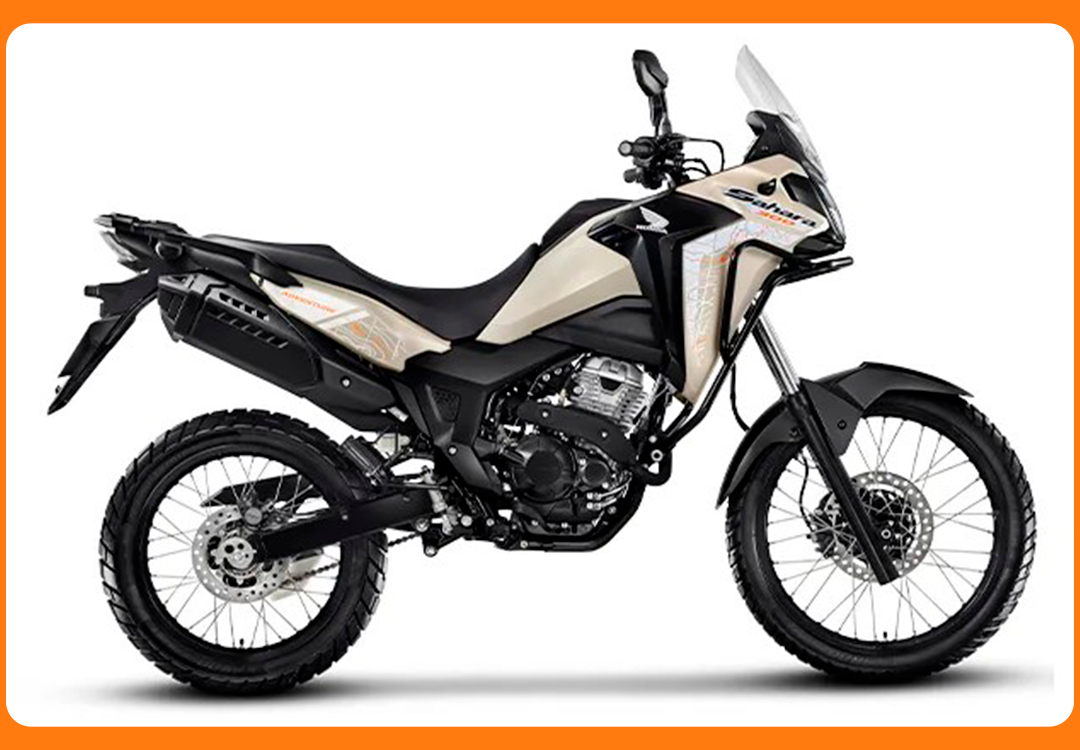 Combinando força com agilidade, a Honda Sahara 300 possui carenagens no tanque e concentração de peso na parte superior.